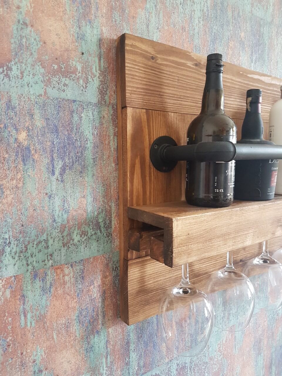 Závesný mini bar na stenu s úložným priestorom na fľaše aj vínové poháre a príslušenstvo.