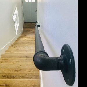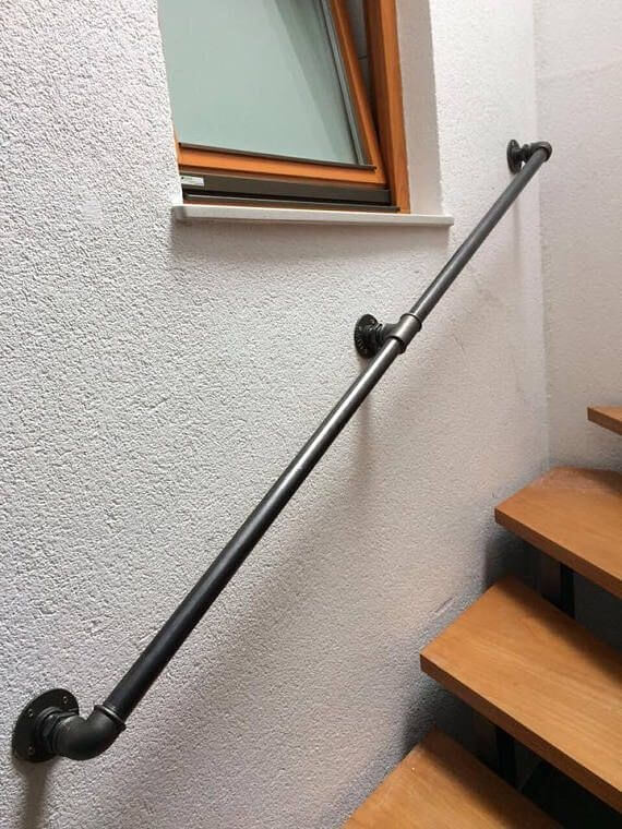 V industriálne ladenom interiéry nemôže chýbať ani zábradlie z trubiek
